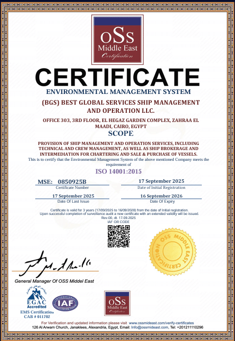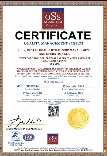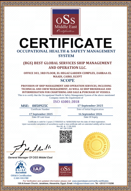 recognized for its commitment to excellence and professionalism in the maritime industry.